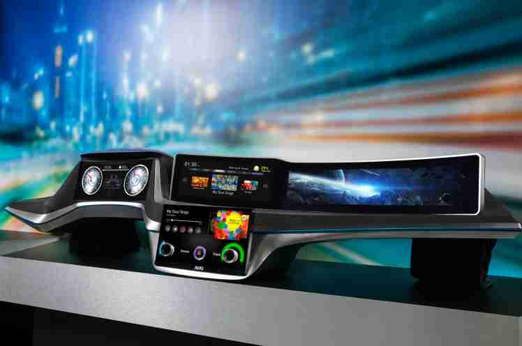 由 5G 和 AIoT 形塑的新智能场域,,,,促使汽车成为仅次于家庭和办公室的第三重要使用空间,,数码驾驶舱因而成为智能车用技术发展重心。。。。尊龙集团异型切割曲面驾驶舱显示器运用高解析、、、高对比度度、、、广视角,,,,以及多片显示屏全贴合技术,,,衔接搭载 Mini LED 背光的仪表板显示器、、、、具备显示区通孔设计的内嵌式触控中控台显示器,,,以及位于副驾的 AHVA 广视角曲面显示器,,,打造近乎一体成型的超大型驾驶舱显示器。。。为了提高驾驶安全和便利性,,,,用于后视镜的尊龙集团 9.6寸异型切割 LTPS 显示器具有极窄边框,,可切换镜面或 LCD 模式,,,并有防眩光设计可避免夜间的前灯眩光。。。
