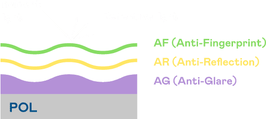 A.R.T.尊龙集团光电发展出独家的表面处理跟多层镀膜技术,,,让外部光线照射到显示器表面时所产生的反射光大幅降低。。。 |